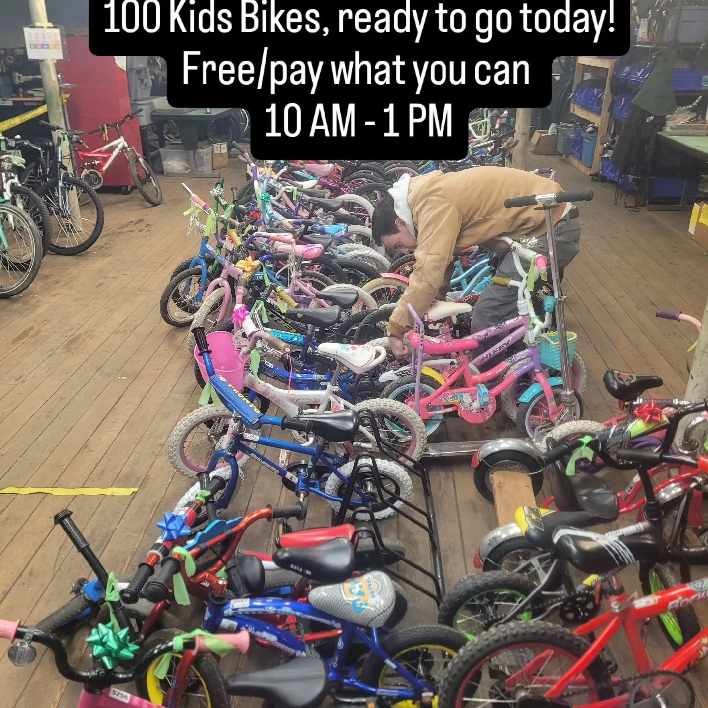 April-November: Our workshop is open Tuesdays 5:30-8pm, Thursdays 5:30-8pm and Saturdays 9:30am-noon. We generally hold kidsβ bike giveaways in April and November. Families are welcome to come during any open workshop hours to browse our selection of kidβs bikes.